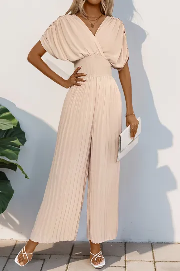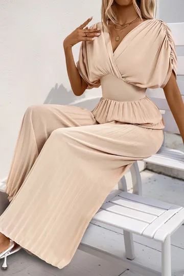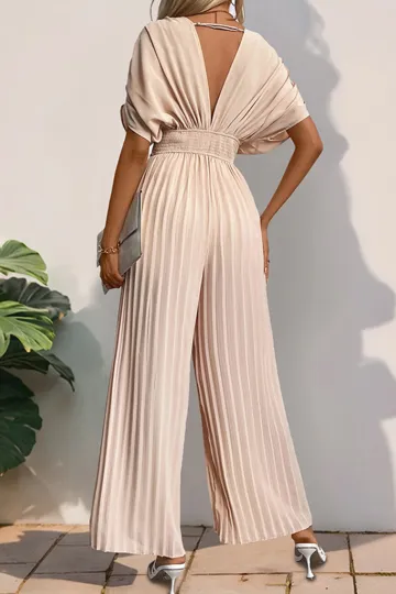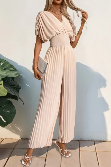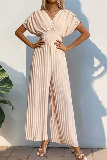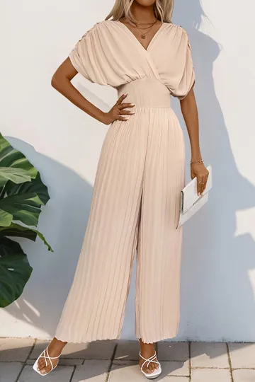 Wholesale Crossover V-neck pleated wide-leg jumpsuit