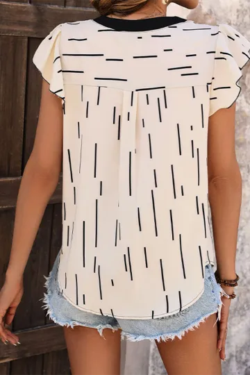 Wholesale Women's Contrast Color Spliced Ruffle Sleeve Line Striped Shirt