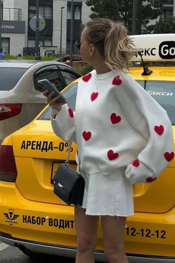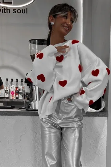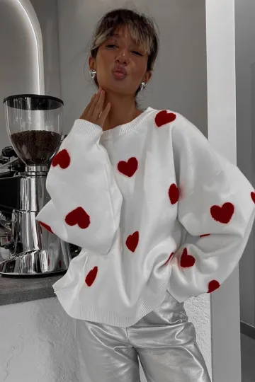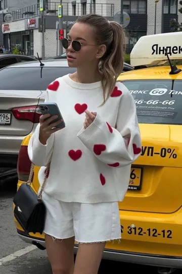 New Women's Valentine's Day Love Round Neck Loose Casual Thickened Sweater