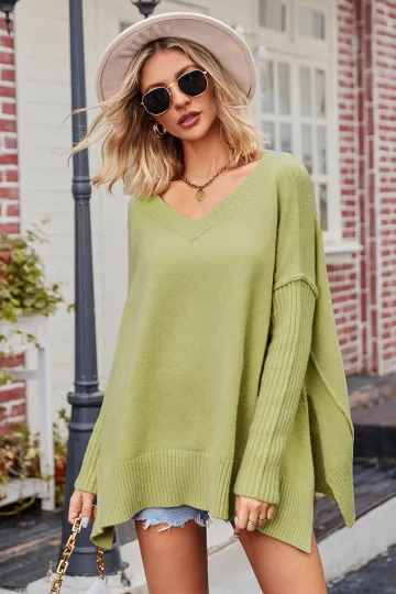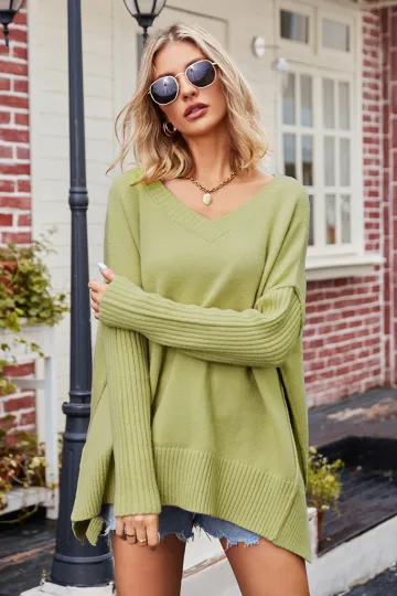 Ladies V Neck Plus Size Fashion Knit Sexy Pullover Sweater