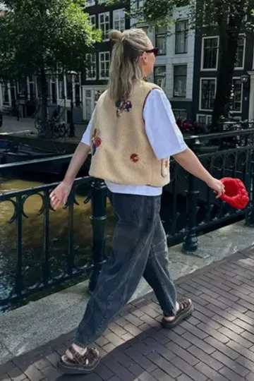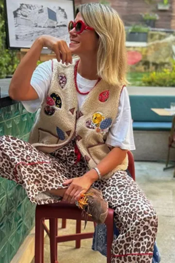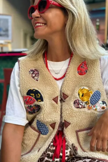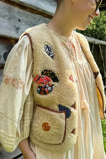 Lambswool vest with appliqué embroidery