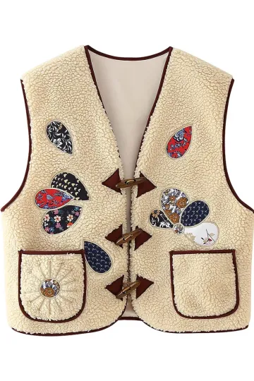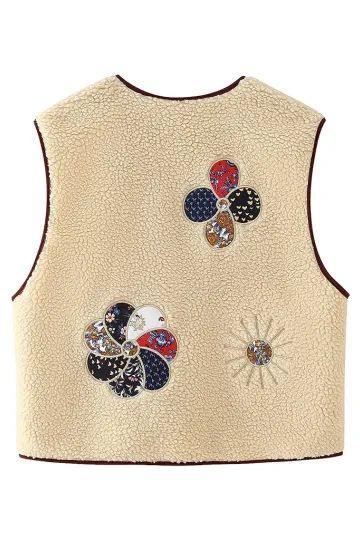 Wholesale Lambswool vest with appliqué embroidery