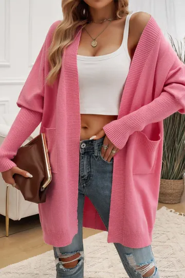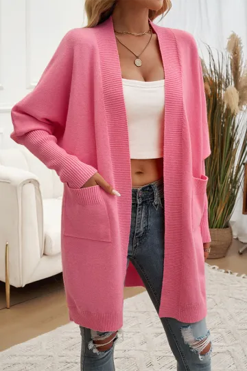 Batwing Sleeve Cardigan Solid Color Sweater Jacket