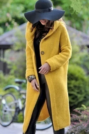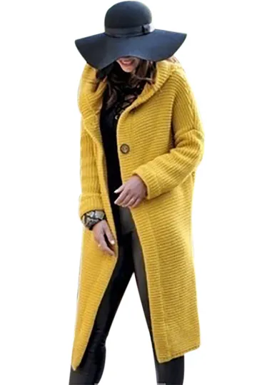 Casual Button Long Cardigan Hooded Sweater Jacket