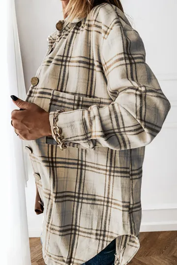 Wholesale Plaid Print Casual Long Button-Up Shirt