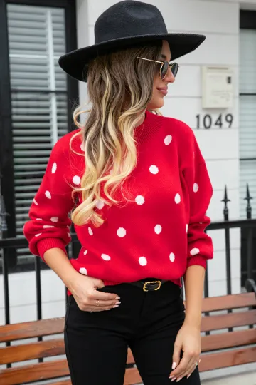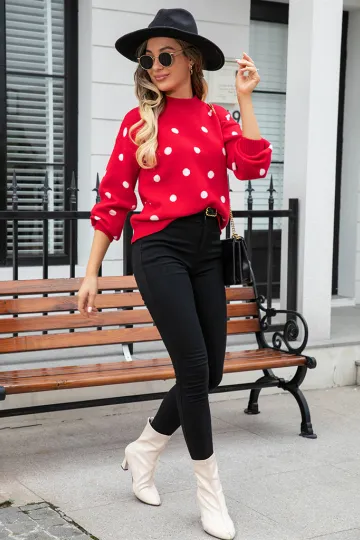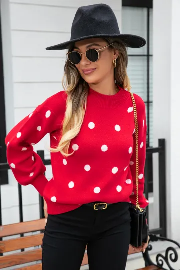 Women's Fashion Knit Polka Dot Pullover
