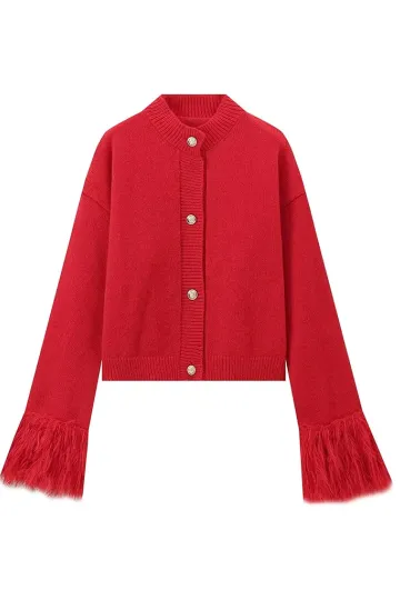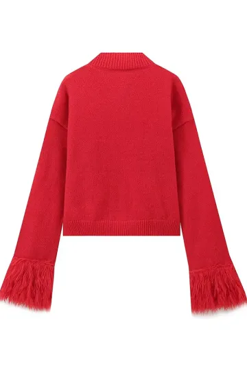 Wholesale Cardigan Sweater with Fur Patchwork Cuffs