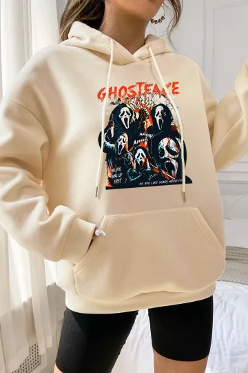 Casual Sleeveless Ghost Print Hoodie