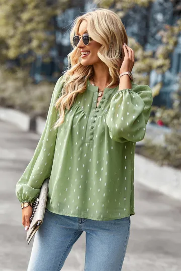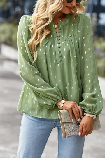 Wholesale Chiffon Button-Up Long Sleeve Blouse