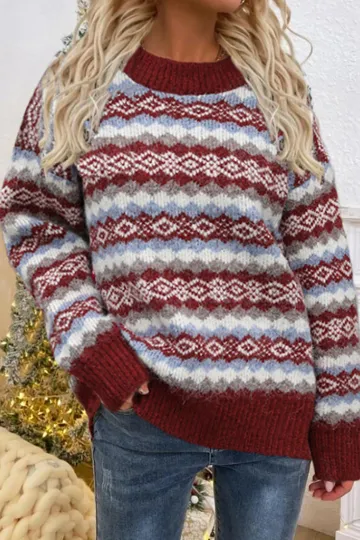 Wholesale Patterned Knit Long Sleeve Casual Sweater