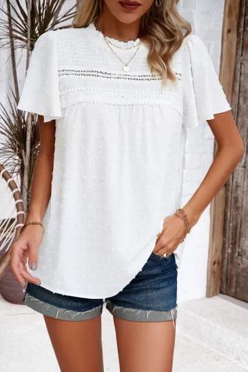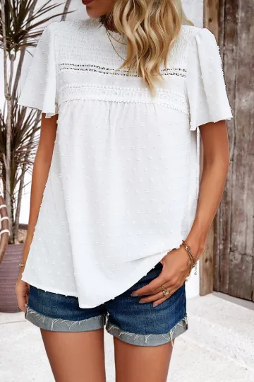 Wholesale Women's elegant solid color short-sleeved lace blouse