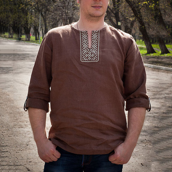 With the shirt laid flat, back facing up, place the tape at the point on the bottom seam of the yoke where the yoke attaches to the sleeve. Measure straight across to the same point on the other side of the shirt