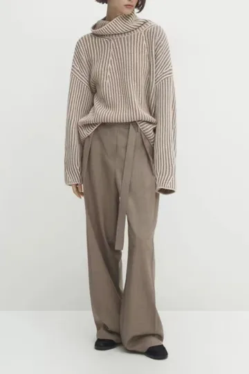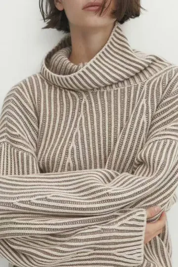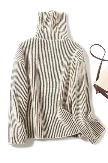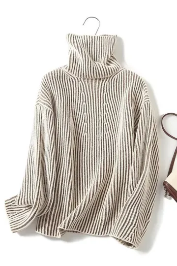 Wholesale New women's lazy style contrasting color line high collar short sweater