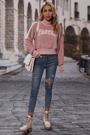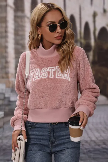 Wholesale Women's round neck pullover long sleeve letter embroidered ice cream pink sweatshirt