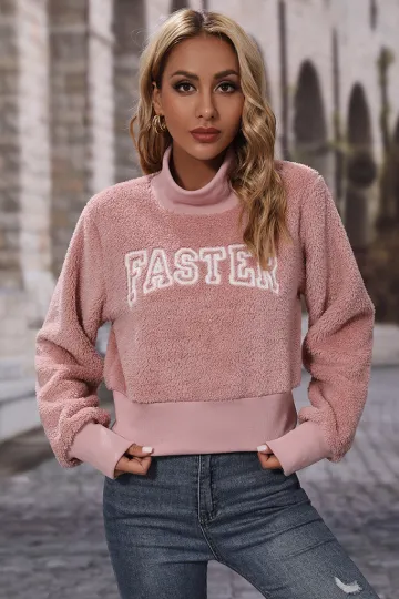 Women's round neck pullover long sleeve letter embroidered ice cream pink sweatshirt