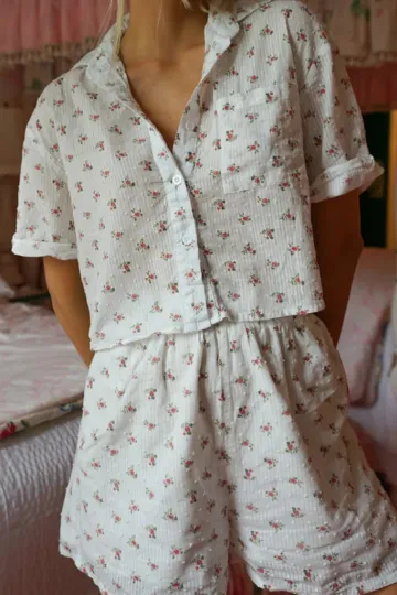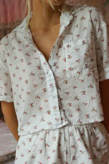 Wholesale New French Floral Short Sleeve Lapel Pajama Set