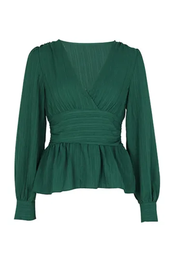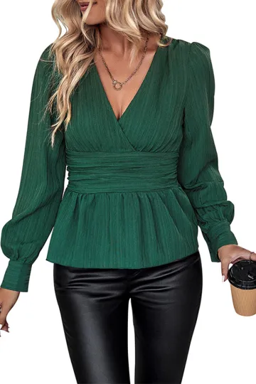 Wholesale Women's new solid color V-neck long-sleeved waist shirt