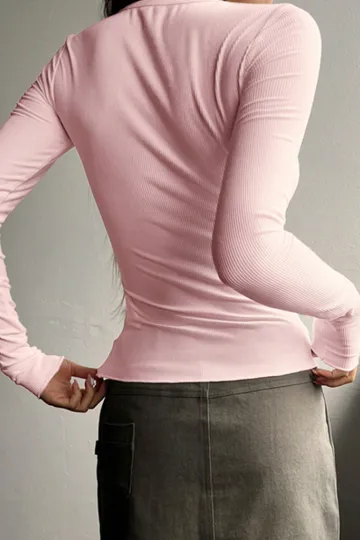 Wholesale Feminine U-neck buttoned long-sleeved knitted top