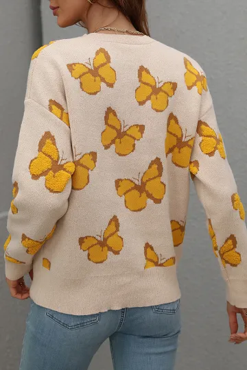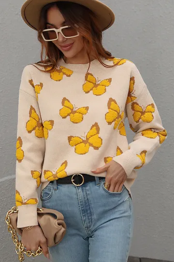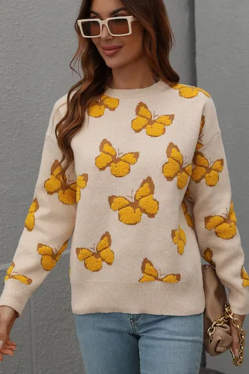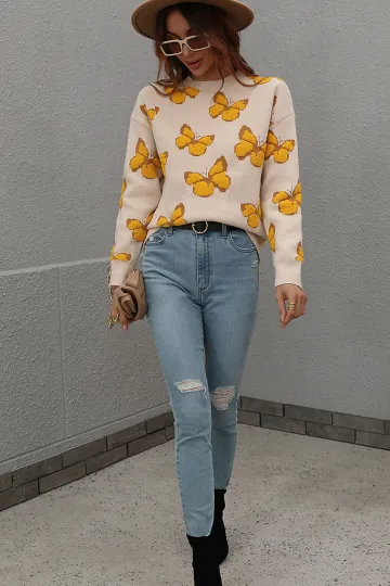 Women's Loose Round Neck Long Sleeve Butterfly Sweater
