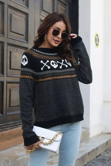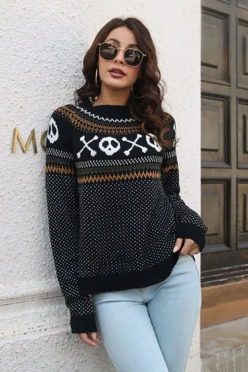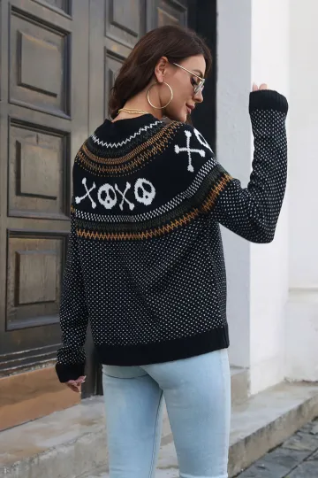 Halloween Skull Polka Dot Long Sleeve Knitted Sweater Women
