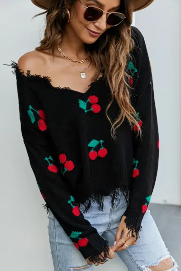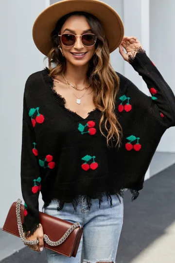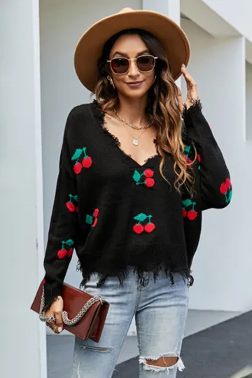 Wholesale Pullover women's loose short V-neck new fringed sweater