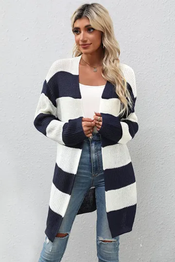 Women's Long Sleeve Striped Cardigan Sweater Jacket