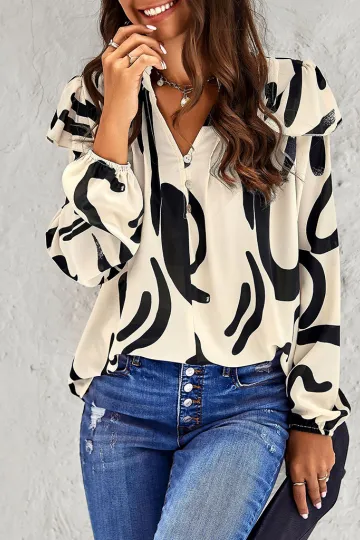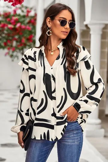 Wholesale New temperament casual plant floral print long-sleeved shirt top