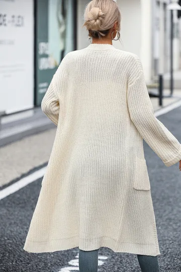 Wholesale women's solid color knitted sweater pocket coat sweater