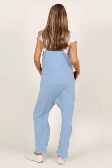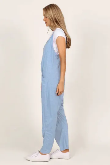 Wholesale Oversized knit two-pocket fit oversized jumpsuit blue
