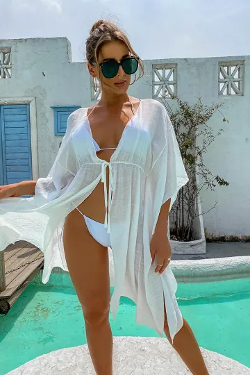 Wholesale Temperament style slit perspective sexy outdoor beach skirt cardigan tie blouse