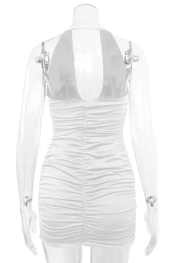Women's V-neck Halter Neck Backless Sexy Pleated Mini Dress