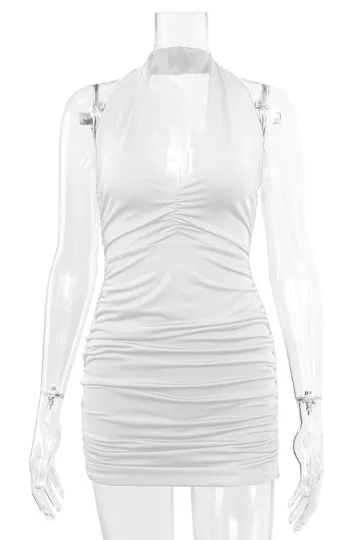 Wholesale Women's V-neck Halter Neck Backless Sexy Pleated Mini Dress