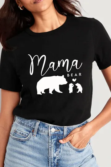 Wholesale Women's Knitted Round Neck Mother's Day Print Short Sleeve T-Shirt