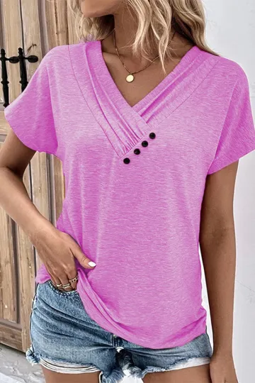Wholesale New casual vacation comfortable loose collar short-sleeved T-shirt sweater button top