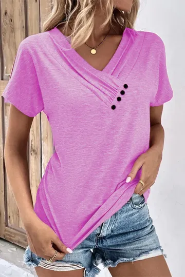 New casual vacation comfortable loose collar short-sleeved T-shirt sweater button top