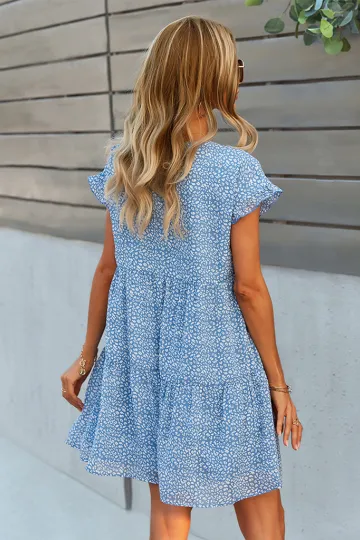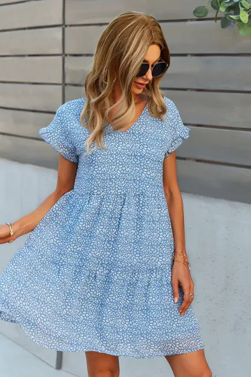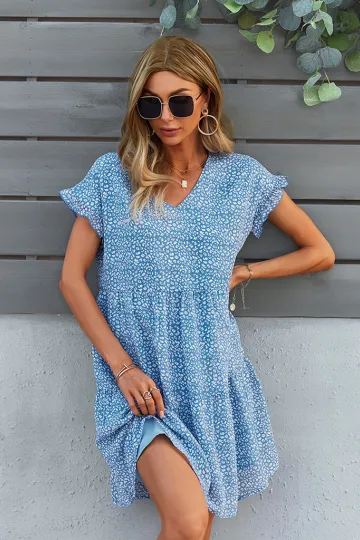 Wholesale Women's Woven V-Neck Printed Loose Short Sleeve Chiffon Dress