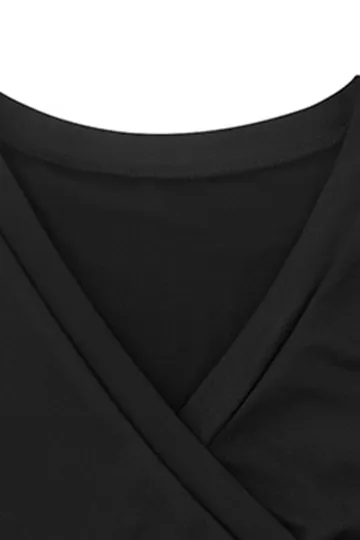 Women's Sexy Cross V Neck Stitching Slim Long Sleeve Solid Color Top
