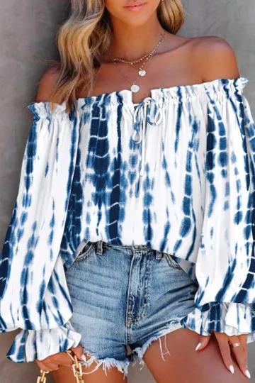 Women's Fashion Sexy Off Shoulder Long Sleeve Printed Shirt