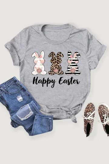 Women's Easter Bunny HAPPY EASTER Letter Print Short Sleeve T-Shirt