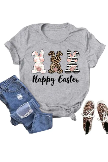 Wholesale Women's Easter Bunny HAPPY EASTER Letter Print Short Sleeve T-Shirt