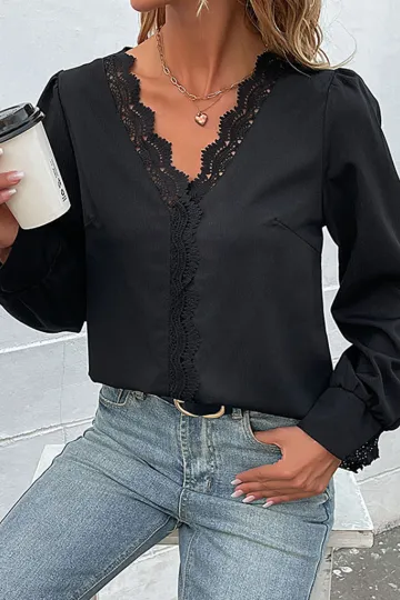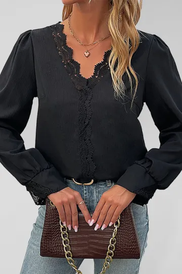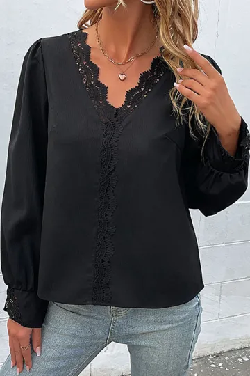Wholesale Women's woven V-neck lace long-sleeved shirt