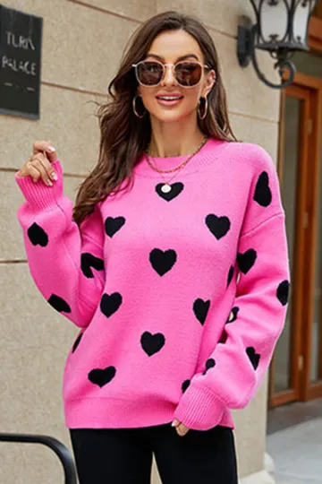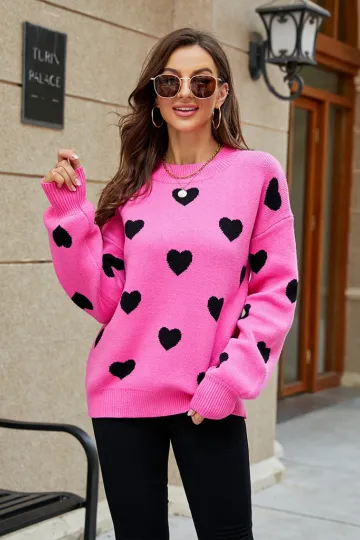 Valentine's Day Heart Pullover Women's Knit Loose Sweater