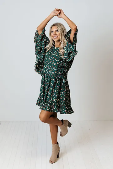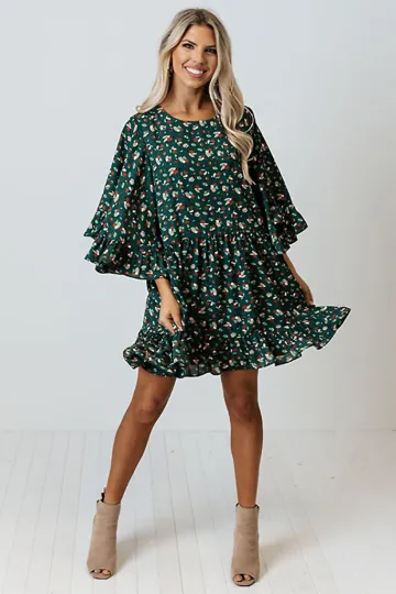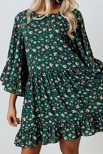 Wholesale Women's leopard print bat long sleeve splicing dress