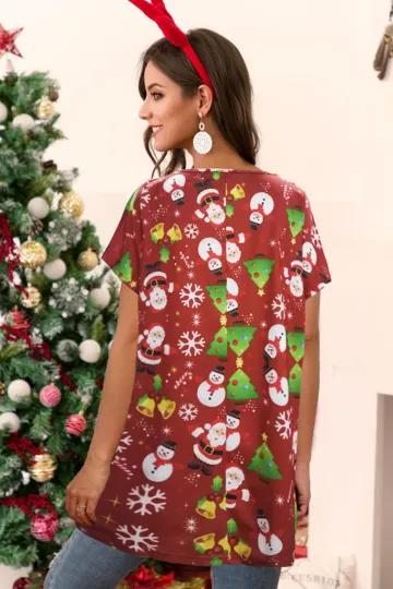 Wholesale Women's Raglan Short Sleeve Christmas T-Shirt Top