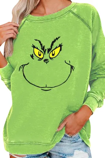 Women's Christmas Greg Grinch Print Long Sleeve Sweatshirt