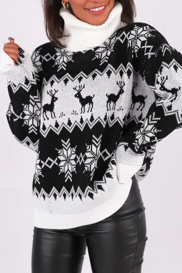 Women's Christmas Jacquard Turtleneck Long Sleeve Sweater