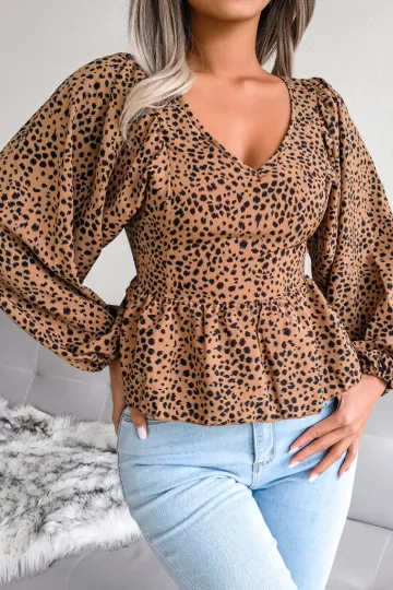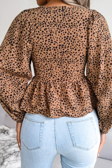 Wholesale Women's Lantern long sleeve casual leopard Chiffon Shirt Top