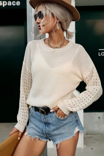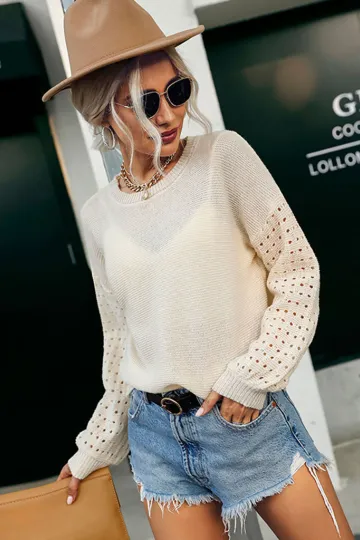 Wholesale Fashion Thin Cutout Long Sleeve White Knit Sweater