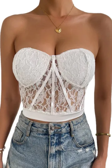 Wholesale Women's sexy back lace hollow stitching tube top top