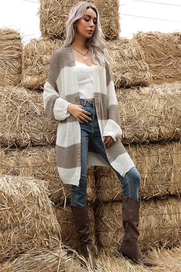 Wholesale women's long stitched long sleeve knitted sweater coat